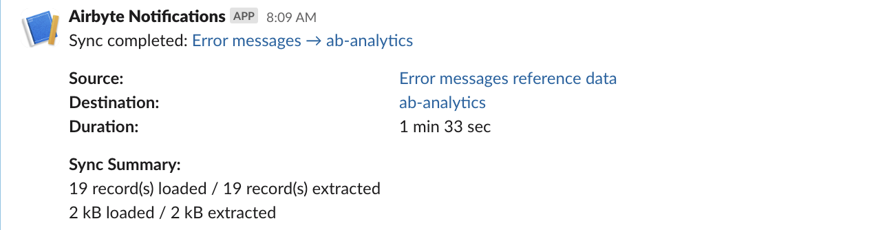 to send a test message to the channel. Or, just run a sync now and try it out! For a successful sync, you should receive a notification that looks like this: